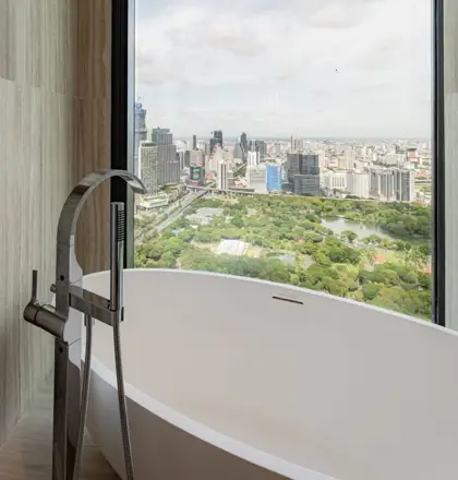 Facilities match the luxury of the residences including a private club, infinity-edge swimming pool, sky gardens, state-of-the-art fitness center, beautifully landscaped green spaces, concierge and 24-hour security, plus views of Lumphini Park.