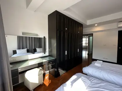 This is a fully furnsihed 3 bedroom, 2 bathroom apartment available to rent at Phatana Court on Sukhumvit 55, Thong Lo. The apartment measures a spacious 200 sqm. and comes with everything you need for a comfortable lifestyle. Thong Lo is home to many fantastic places to dine, socialize and shop and there is a BTS Station at the end of the road. Phatana Court has a swimming pool, security service and parking for its residents. For more information on this apartment for rent in Bangkok contact us at BKKCondos.