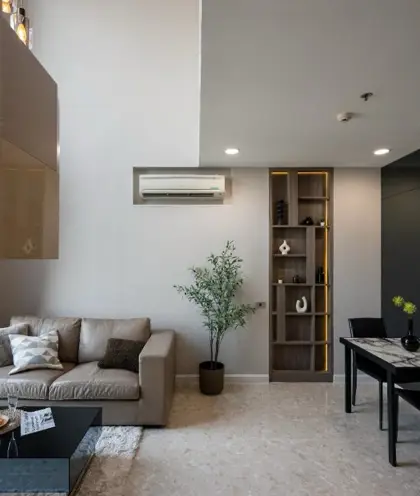 The Crest Sukhumvit 34 is a modern luxury condominium located in the vibrant Thong Lo area of Bangkok, just a short walk from BTS Thong Lo. This elegant high-rise is designed with sophistication and comfort in mind, offering stylish residences with spacious layouts, premium finishes, and floor-to-ceiling windows that showcase panoramic views of the city. Each unit at The Crest Sukhumvit 34 combines functionality with modern design, making it ideal for professionals, families, and investors. This is a 2 bedroom, 2 bathroom duplex property on the market for sale and available to rent. The condo measures 98.05 sqm. and comes fully furnished.