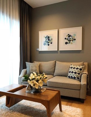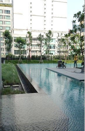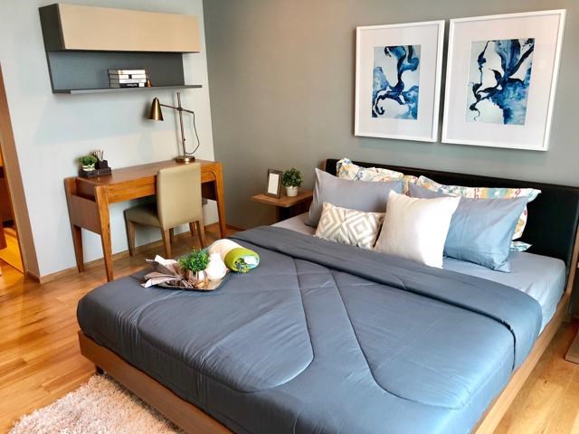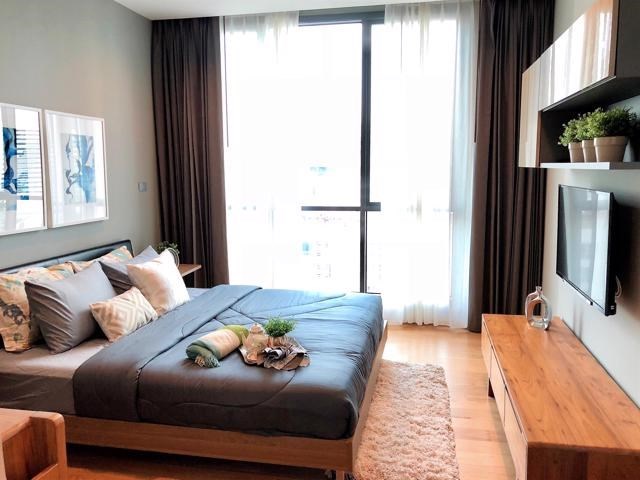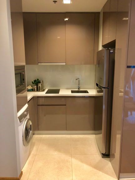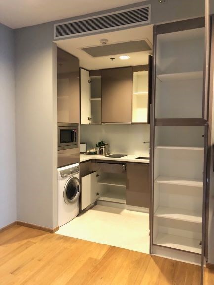 The condo is fully furnished 46 Sqm. on the 14th floor, modern golden teak furniture and stainless-steel appliances, including : Two brand new Sony LCD 40” TVs in living room and master bedroom, new front-load washer and dryer, new stainless-steel refrigerator, new stainless-steel appliances, including microwave, stove, hood, brand new furniture, office table, curtain, comfortable hotel-standard bed, German-made Duravit sanitary, rain shower, and shower glass, cable TV and Internet ready, touchless keycard access system for main gate and unit.