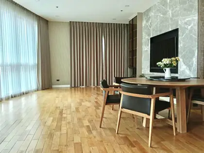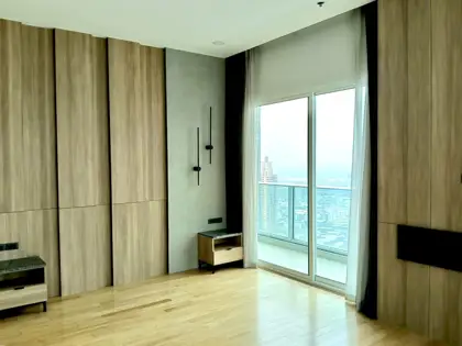 Comprising four towers rising 51 floors each, the development features over 600 residential units, ranging from spacious 1-bedroom (68 sqm) to 4-bedroom (over 300 sqm) apartments and exclusive penthouses. Each residence is meticulously designed with high ceilings, floor-to-ceiling windows, and open-plan layouts that fill the interiors with natural light and showcase breathtaking views of the Bangkok skyline. Now available to rent on the 42nd floor of Tower D is this 3 bedroom, 3 bathroom property. The condo measures 193 sqm and comes fully furnished.