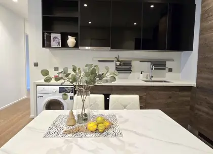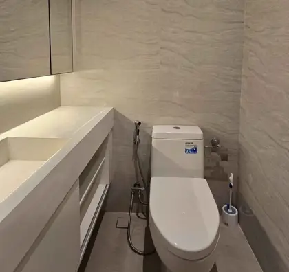 The residences at Muniq Langsuan feature spacious layouts with high ceilings, floor-to-ceiling windows, and premium materials imported from around the world. Each unit is meticulously designed to maximize comfort and aesthetics, with warm tones, luxurious finishes, and smart living features. Residents enjoy sweeping views of the city skyline and green park vistas, offering a serene escape in the middle of the city.