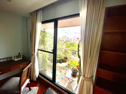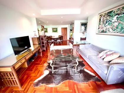 Available to rent at Supreme Ville is this 2 bedroom, 2 bathroom condo. The spacious 6th floor property is fully furnished, has a large balcony and measures 118 Sq.m. The condo is quiet and has a pleasant garden view. The building has a swimming pool, gym, sauna, garden/playground and security and parking.