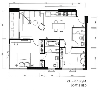This is a 2 bedroom, 2 bathroom property available to rent at The Lofts Asoke by Raimon Land on Sukhumvit 21. The condo is nicely decorated and furnished, measures a comfortable 86.85 Sqm and is situated on the 26th floor of this modern condominium.
