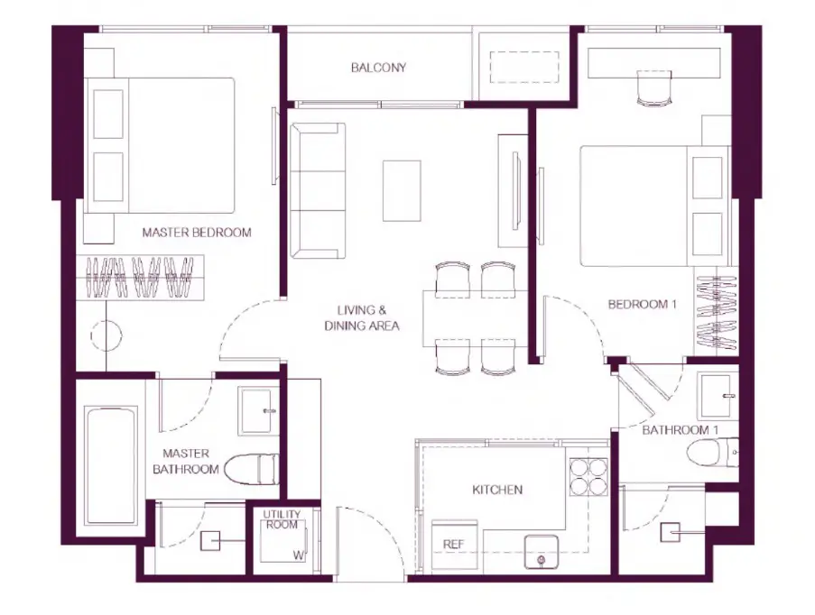 Each residence at Widen by Sansiri is crafted for expansive, well-proportioned urban living. Unit types range from 1-bedroom layouts of around 45.25 sqm, through a broad selection of 2 bedroom and 2 bedroom plus units (63.75 - 90.75 sqm), up to generous 3 bedroom units and penthouse series (143.75 - 209.75 sqm). The design emphasizes large windows, natural materials, and a seamless connection with greenery, offering city convenience without compromising on calm and comfort.