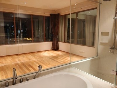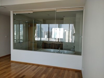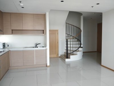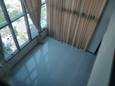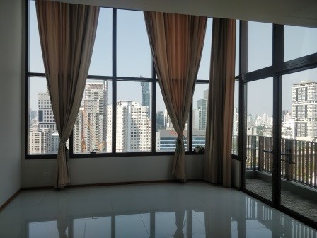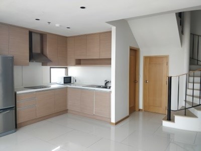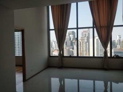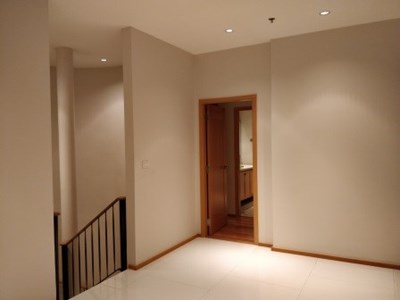 On the market for sale with a tenant at The Emporio Place, Sukhumvit 24, is this 2 bedroom, 3 bathroom duplex condo. The property measures 130 sqm and is nicely located on the 23rd floor with pleasant unblocked views of the surrounding area towards the North and East. There is a 2nd bedoom on the lower floor and master bedroom on the upper floor, as well as a space at the top of the stairs that can be used as an office space or extra living space.