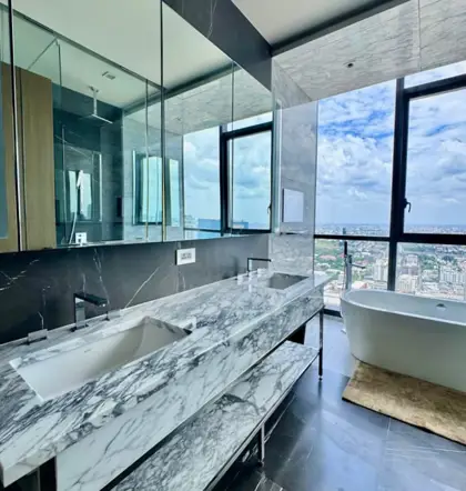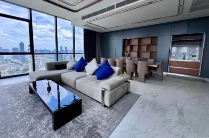 Available to rent at The Monument Thong Lo on Thong Lo Road, is this 3 bedroom, 4 bathroom condo. The fully furnished property measures a spacious 253 sqm, has a private lift entrance, 3m high ceilings and is situated on the 37th floor with amazing views. The Monument Thong Lo, by Sansiri, is a modern, luxury high-rise condominium that has all the facilities you would expect; including a lovely swimming pool, fully equipped fitness center, lounge, concierge, valet parking and security service.