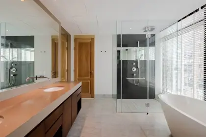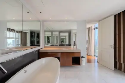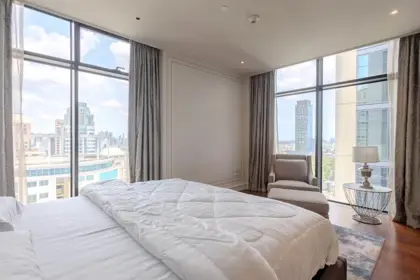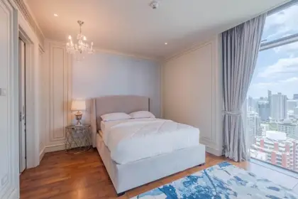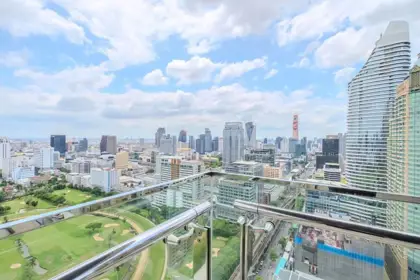 This is a luxury 3 bedroom, 4 bathroom leasehold property on the market for sale and available to rent at The Residences at The St. Regis Bangkok. The property measures a spacious 439.28 sqm, comes fully furnished and is situated on the 35th floor. The property has a spacious living and dining area with large terrace overlooking The Royal Bangkok Sports Club and a maid's quarters.